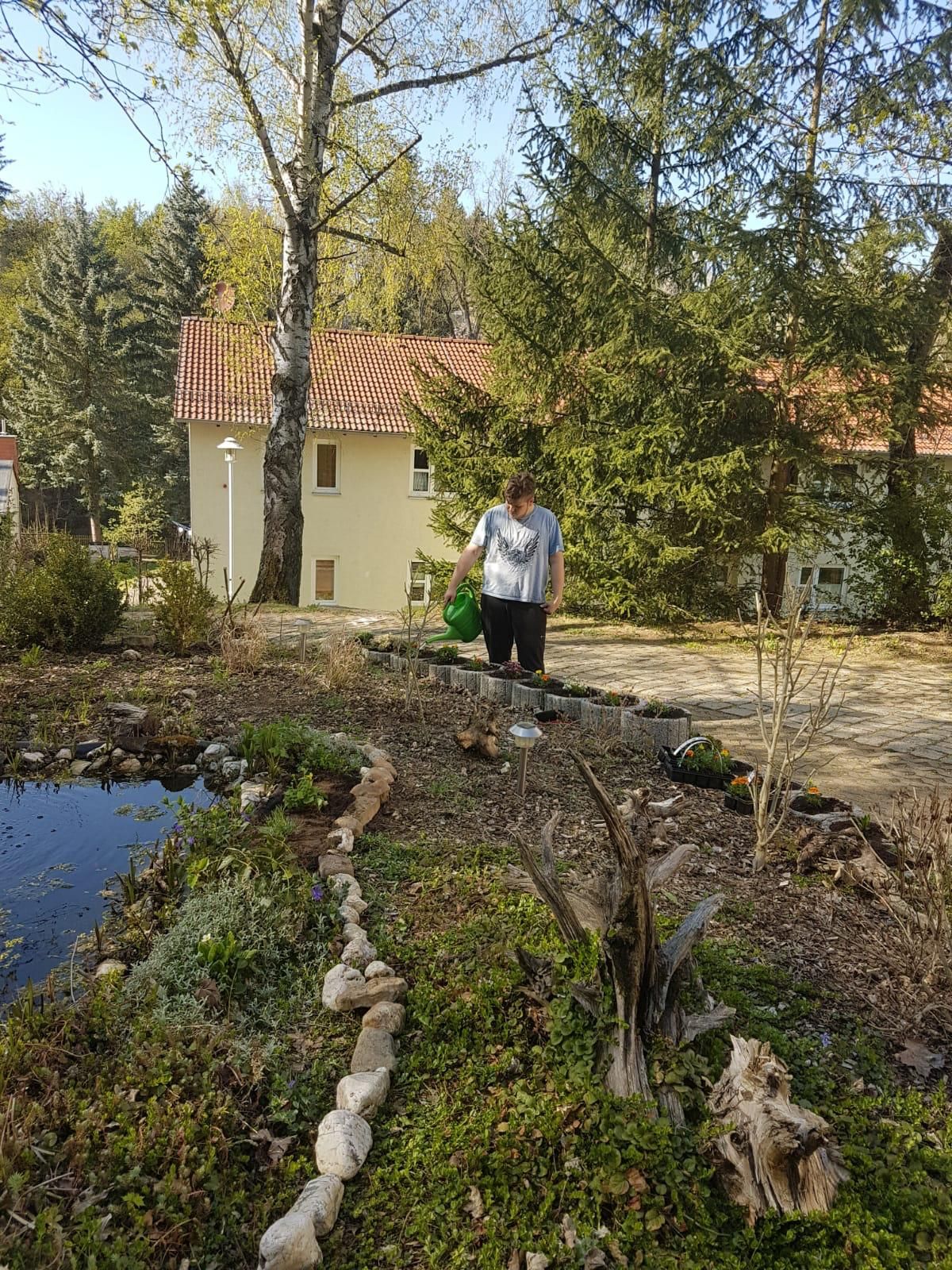 Um die freie Zeit sinnvoll zu nutzen, brachten die Jugendlichen und die Erzieher des Syltenhauses ihren Garten wieder auf Vordermann und haben unter anderem den Teich erweitert, eine Trockenmauer gesetzt und neue Blumen gepflanzt. Bei diesem Projekt zeigten sich alle Jungs sehr motiviert, da jeder eine Aufgabe fand, um mitzuwirken. An diesen Tagen hatten wir super Wetter mit Sonnenschein, sodass neben der Gartenarbeit auch genügend Zeit für eine kleine Wasserschlacht blieb. Solche Aktionen tragen trotz der schwierigen Situation dazu bei, den Zusammenhalt der Gruppe zu stärken und nochmal etwas näher zusammenzuwachsen.