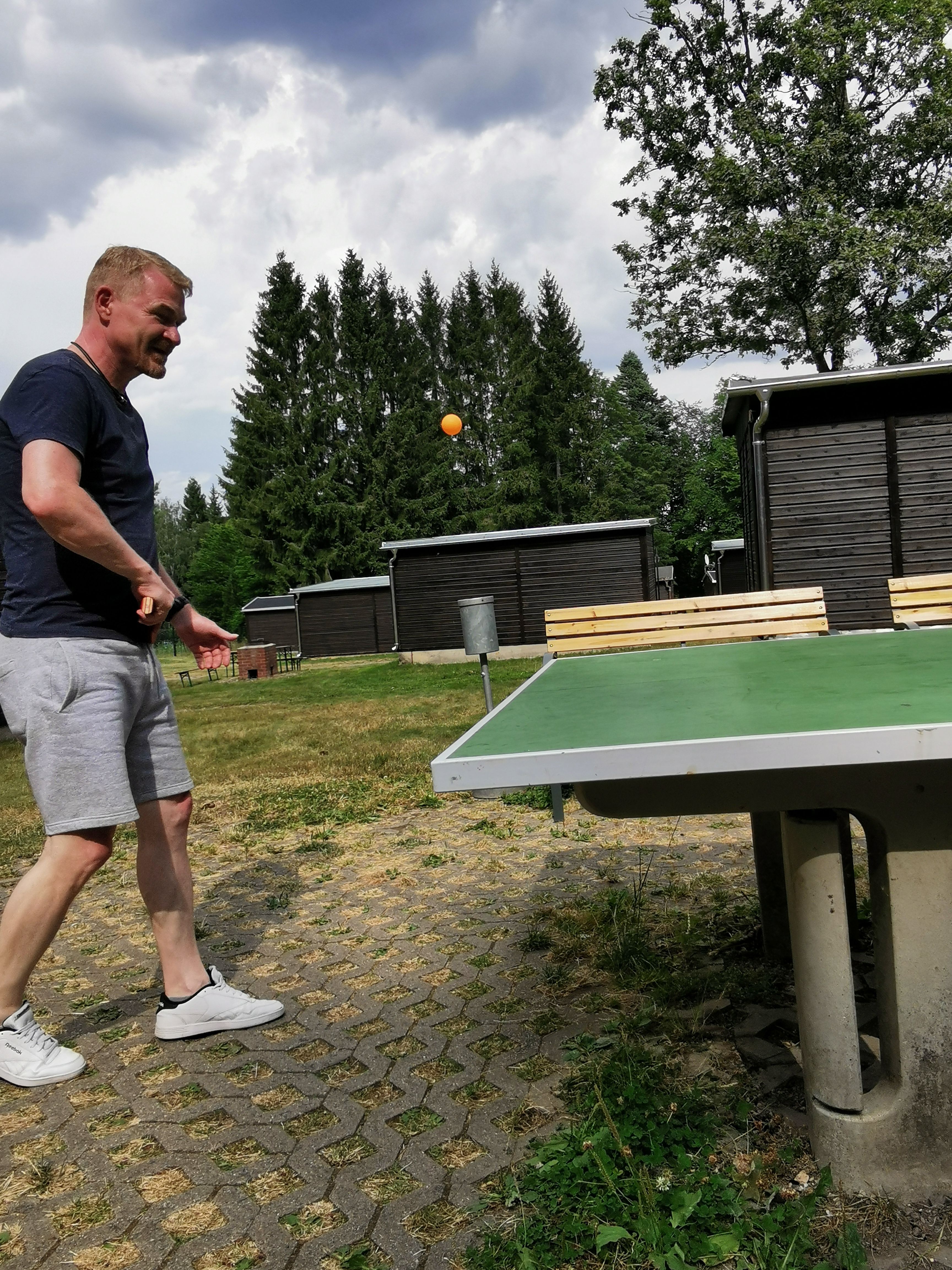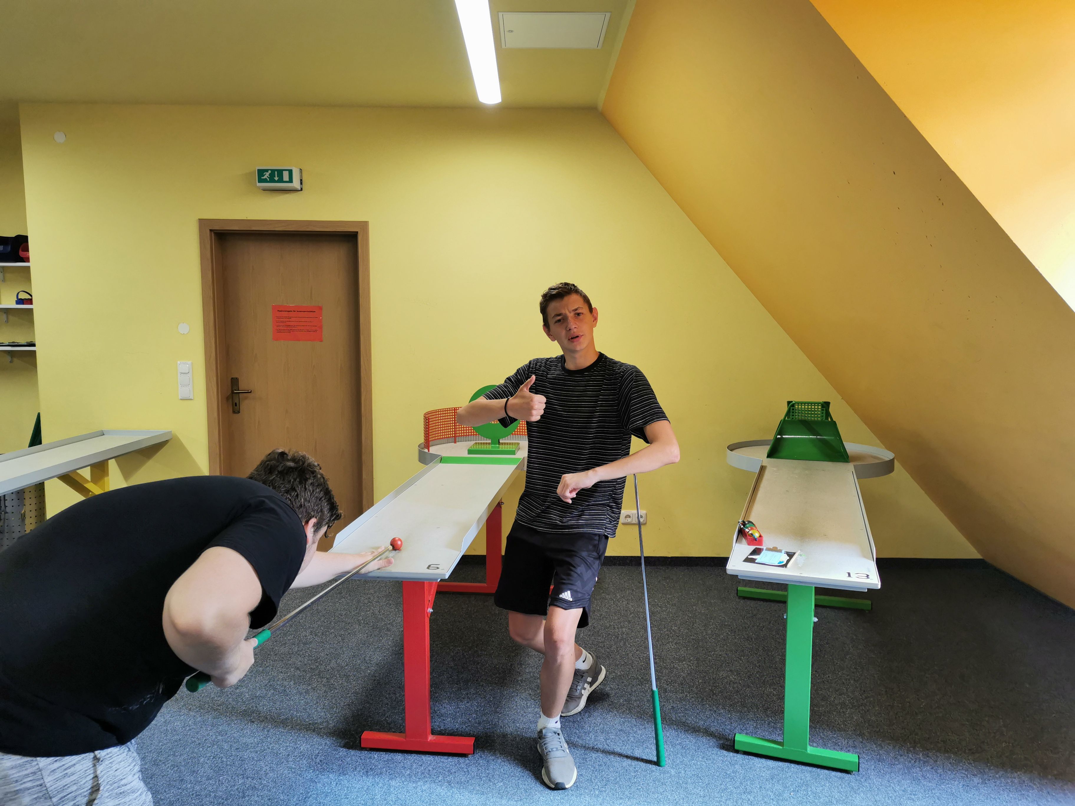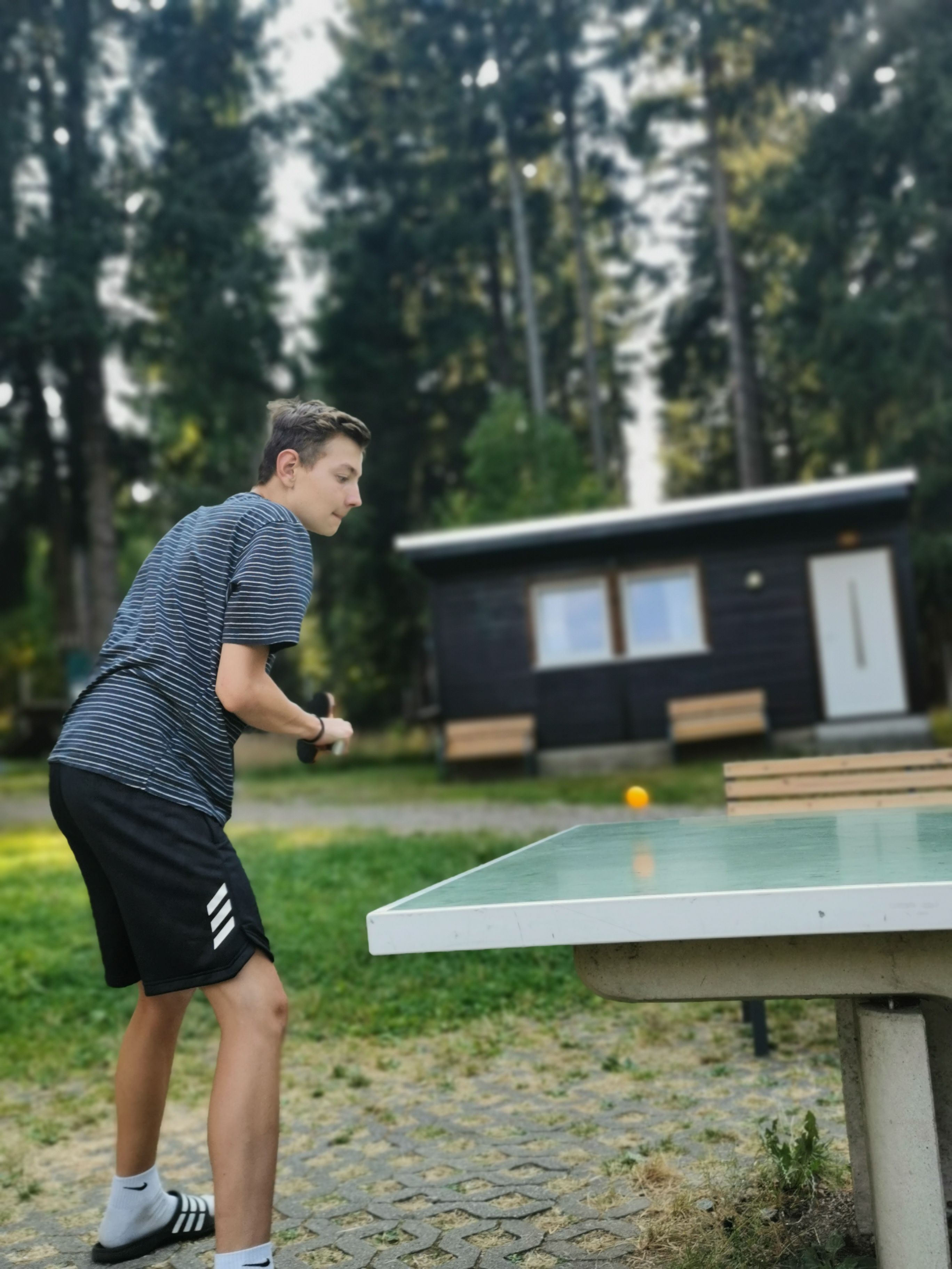 Im großflächigen Areal des Kinder- und Jugenderholungszentrum selbst gab es eine Fülle an sportlichen Betätigungsmöglichkeiten und zu buchbaren Veranstaltungen, so dass eigentlich keine Langeweile aufkommen sollte. Mit Fußball, Tischtennis, Federball, Pit Pat, Bowling, Kletterpark, Geocaching, Disco, Trimm-Dich-Pfad, WLAN, Spielplatz, Waldspaziergang usw. hatten wir so viele Unternehmungen, dass wir das Bogen- und Lasergewehrschießen zu Gunsten eines Badbesuches absagen mussten.