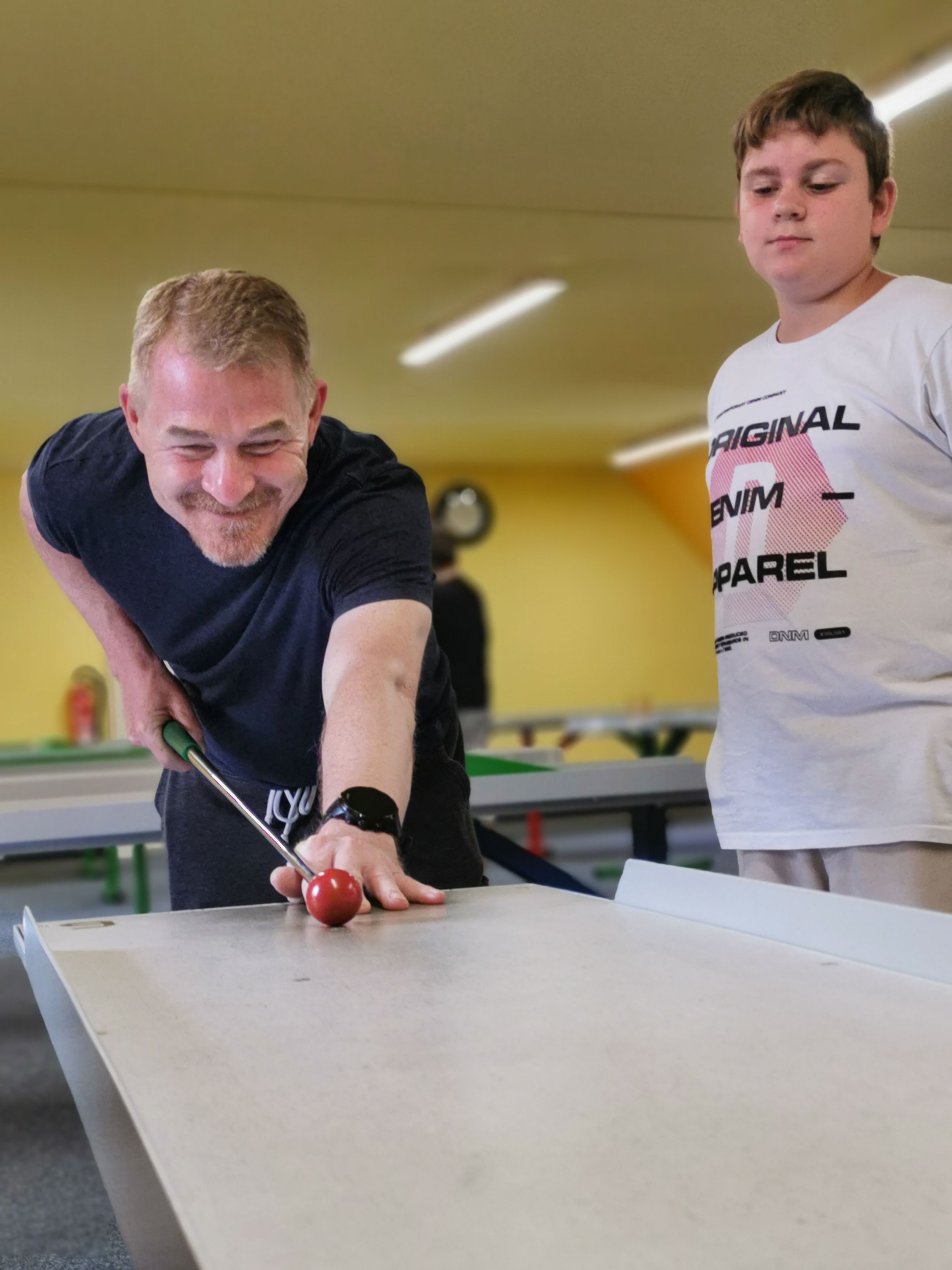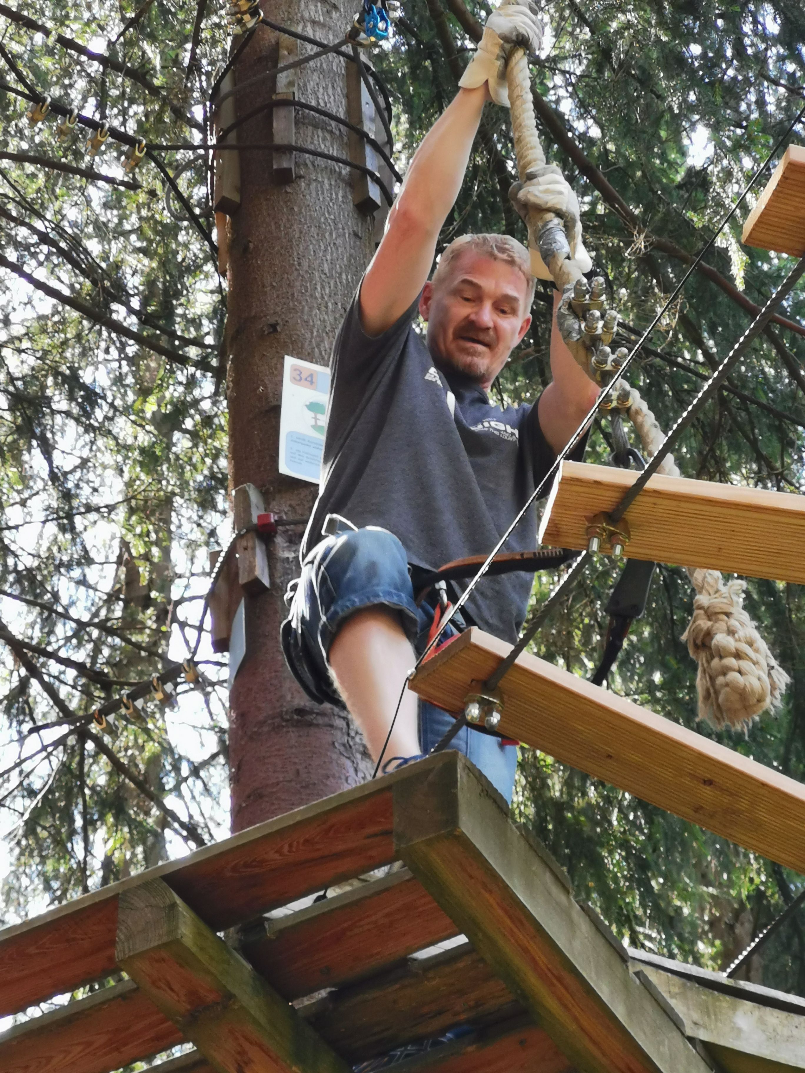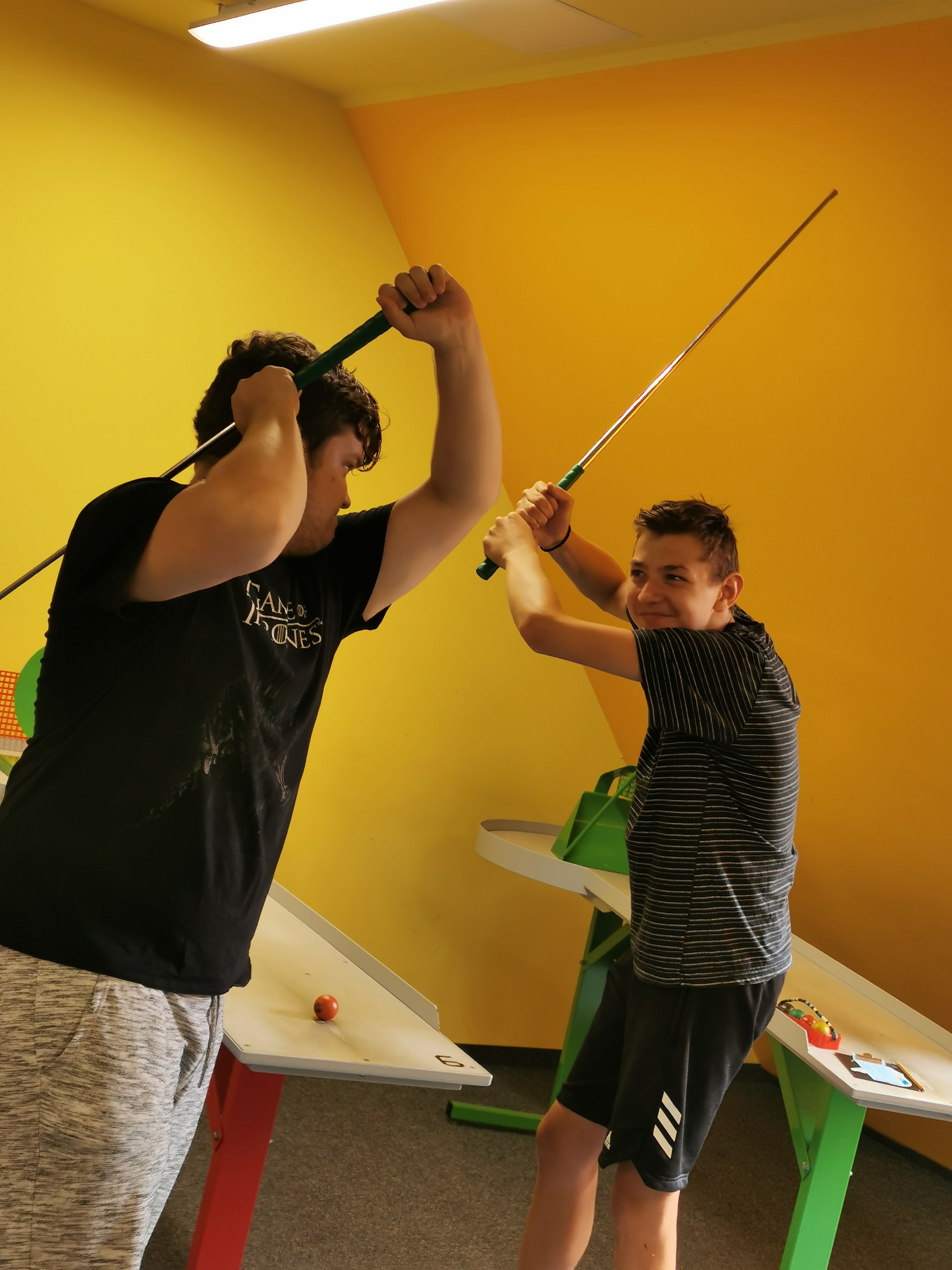 Im großflächigen Areal des Kinder- und Jugenderholungszentrum selbst gab es eine Fülle an sportlichen Betätigungsmöglichkeiten und zu buchbaren Veranstaltungen, so dass eigentlich keine Langeweile aufkommen sollte. Mit Fußball, Tischtennis, Federball, Pit Pat, Bowling, Kletterpark, Geocaching, Disco, Trimm-Dich-Pfad, WLAN, Spielplatz, Waldspaziergang usw. hatten wir so viele Unternehmungen, dass wir das Bogen- und Lasergewehrschießen zu Gunsten eines Badbesuches absagen mussten.