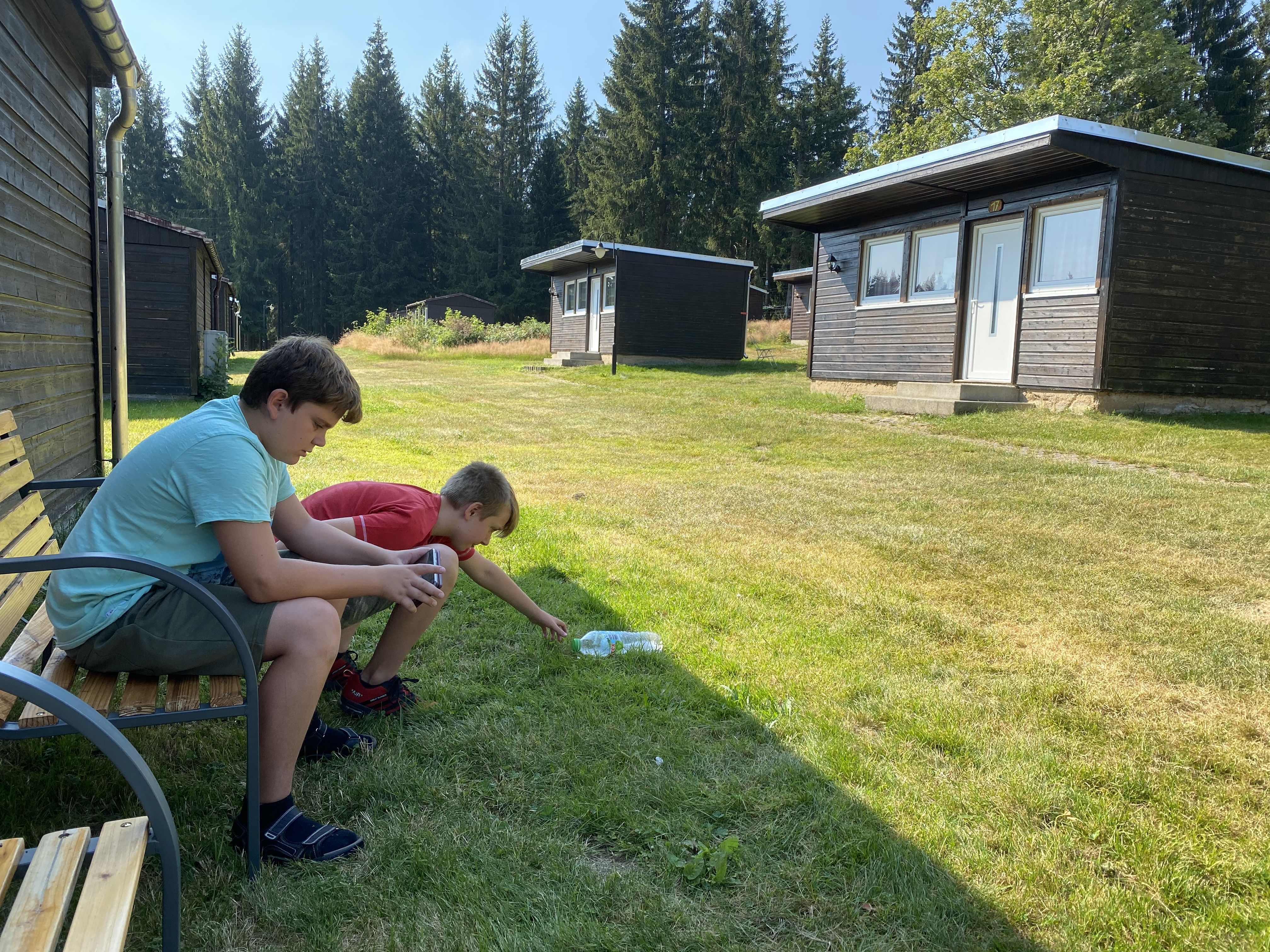 Da hatten wir wohl die heißeste Woche des Jahres gebucht, als wir am 08.08. für sieben Tage zum KiEZ Waldpark Grünheide [ https://waldpark.de ] aufbrachen. Zum Glück aber klettert im Vogtland das Thermometer nicht ganz so steil, so dass man es bei einem kleinen Lüftchen im Schatten stets aushalten konnte. Für eine Abkühlung lag das Waldbad Brunn in 2km Entfernung bereit.