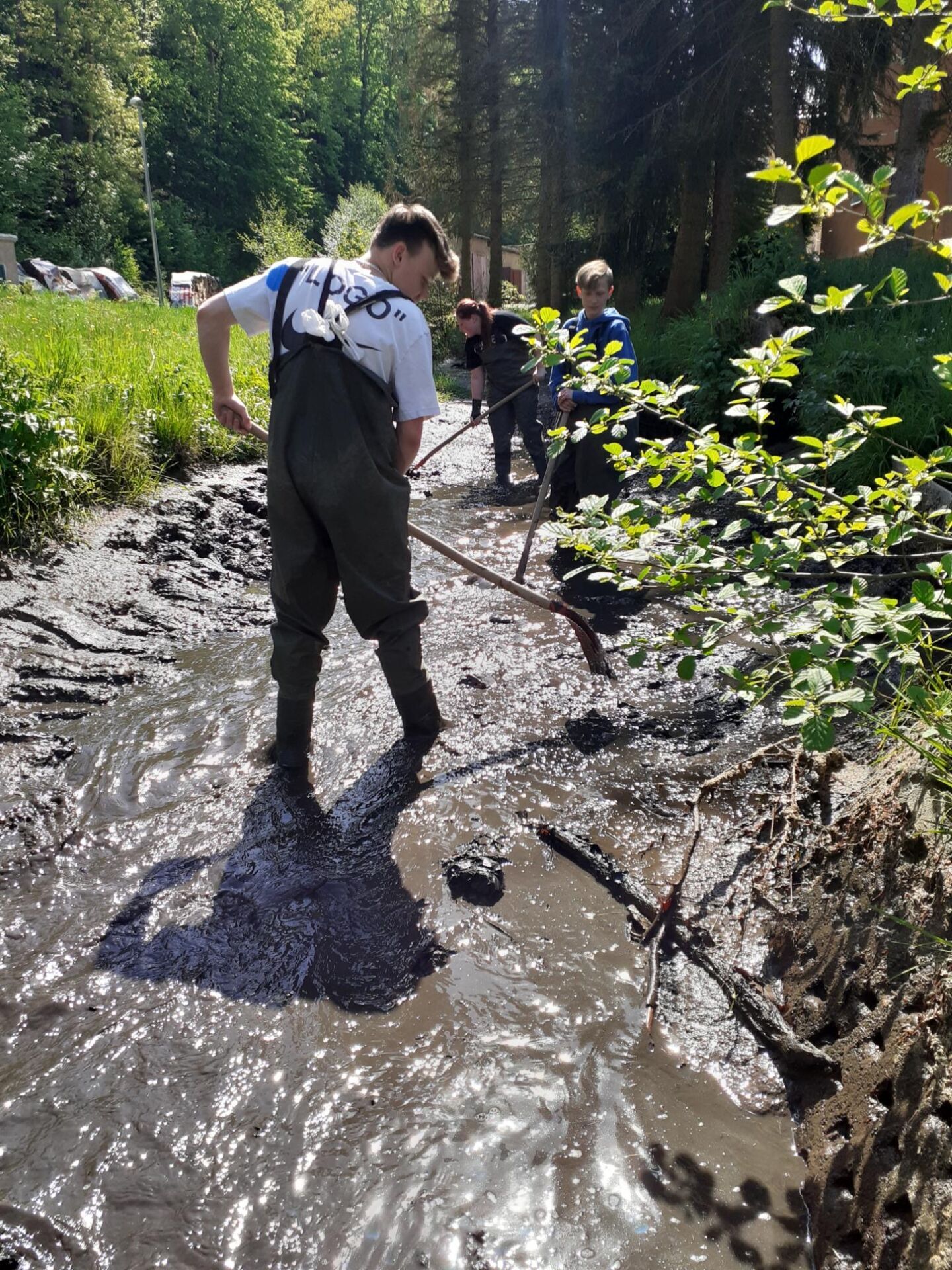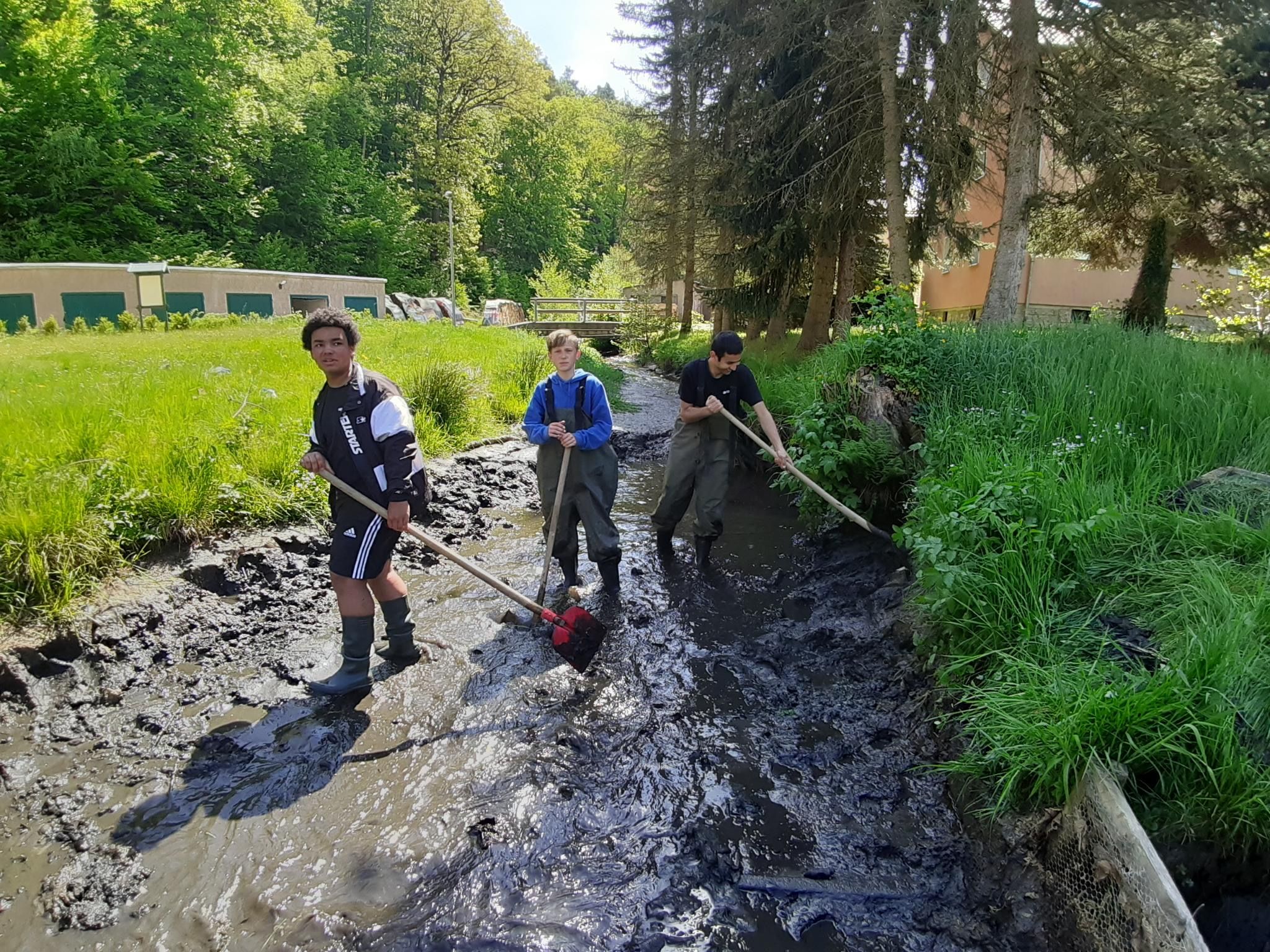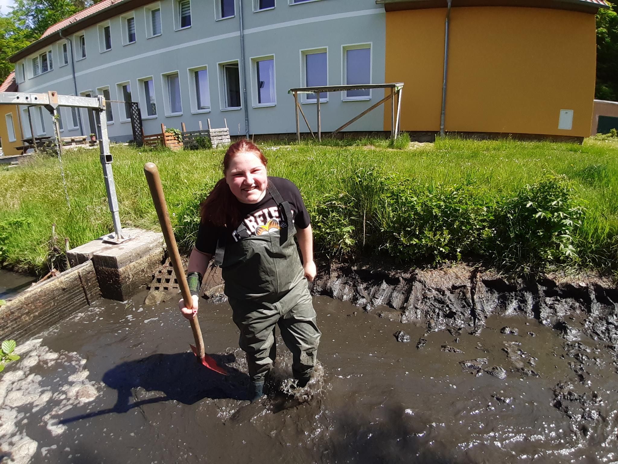 Unterstützung erhielten sie dabei von Herr Schurtzmann, dem Bewirtschafter des Teiches auf dem Gelände der Einrichtung. Herr Schutzmann klärte die Jugendlichen über die Entstehung des Teiches sowie das Verhalten am Teich und beim Angeln auf. Gemeinsam wurden in verschiedenen Stationen Vorbereitungen getroffen, damit der Teich in diesem Jahr von den Jugendlichen zum Angeln genutzt werden kann.