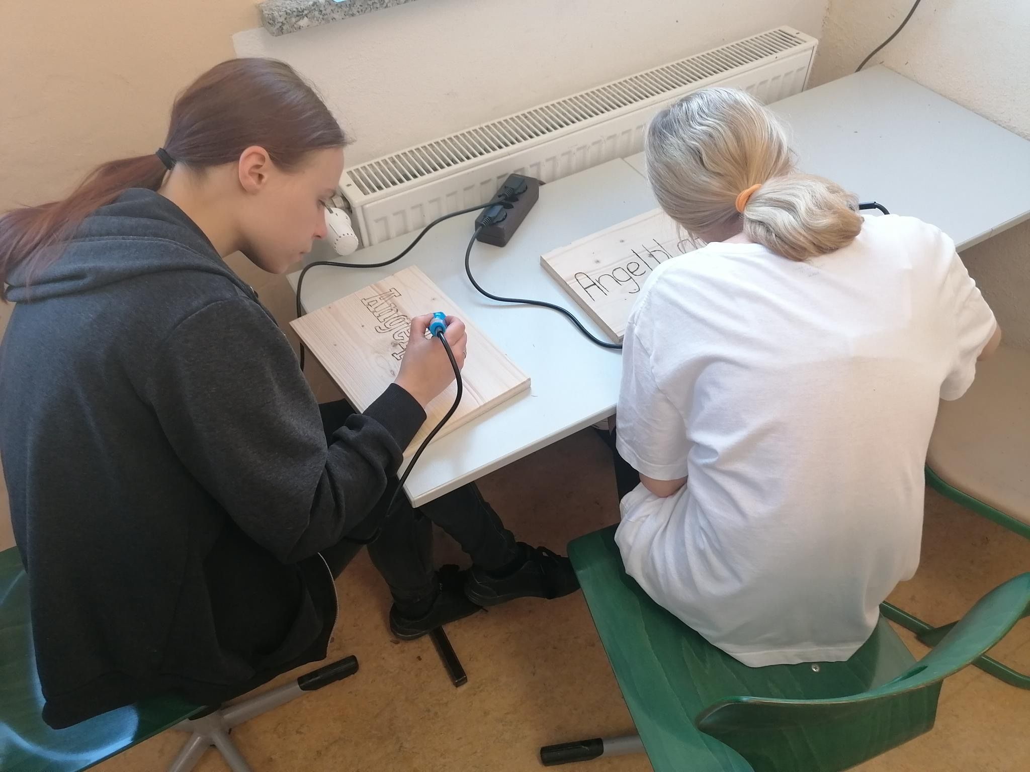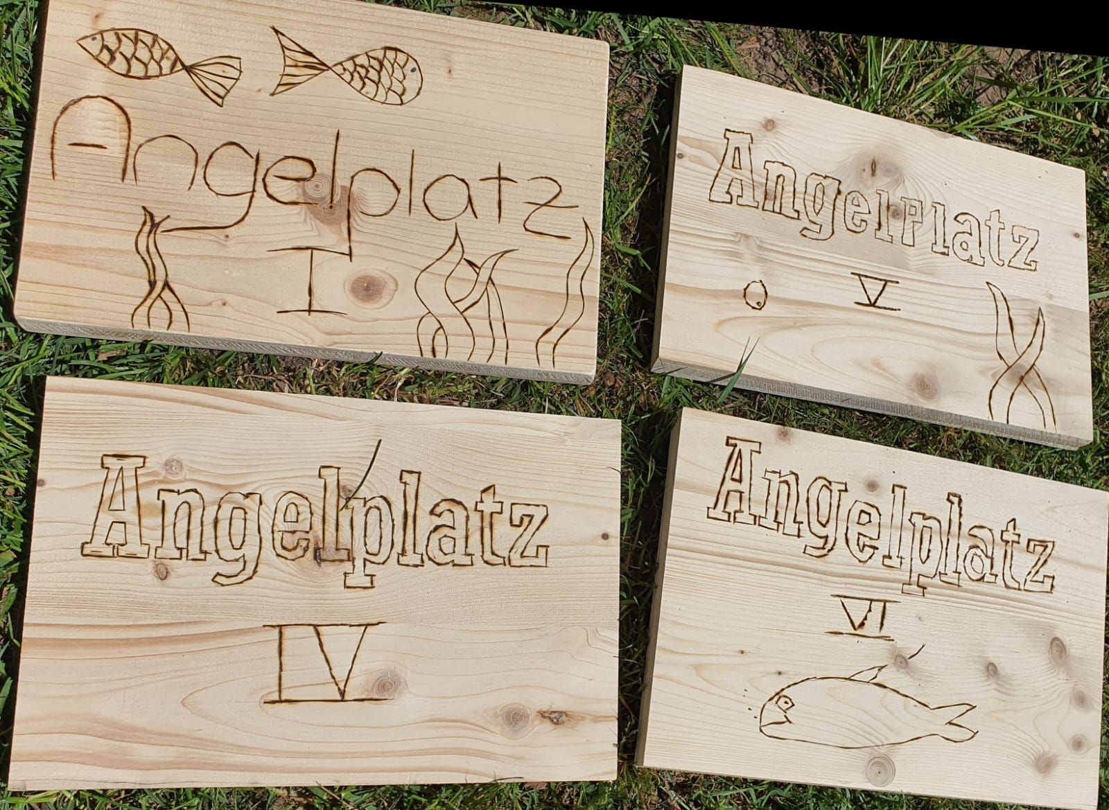Die erste Station reinigte das Wehr, damit die Frischwasserzufuhr für den Angelteich intakt bleibt. Eine weitere Station kümmerte sich um die Instanthaltung des Angelzubehörs der Einrichtung. Um geeignete Angelplätze zu schaffen, zeigte Herr Schutzmann ideale Stellen, welche von den Jugendlichen mit Hilfe der Mitarbeiter des Jugendhilfezentrums vorbereitet wurden. Für Markierung dieser Angelplätze kreierte die vierte Station gelötete Holzschilder.