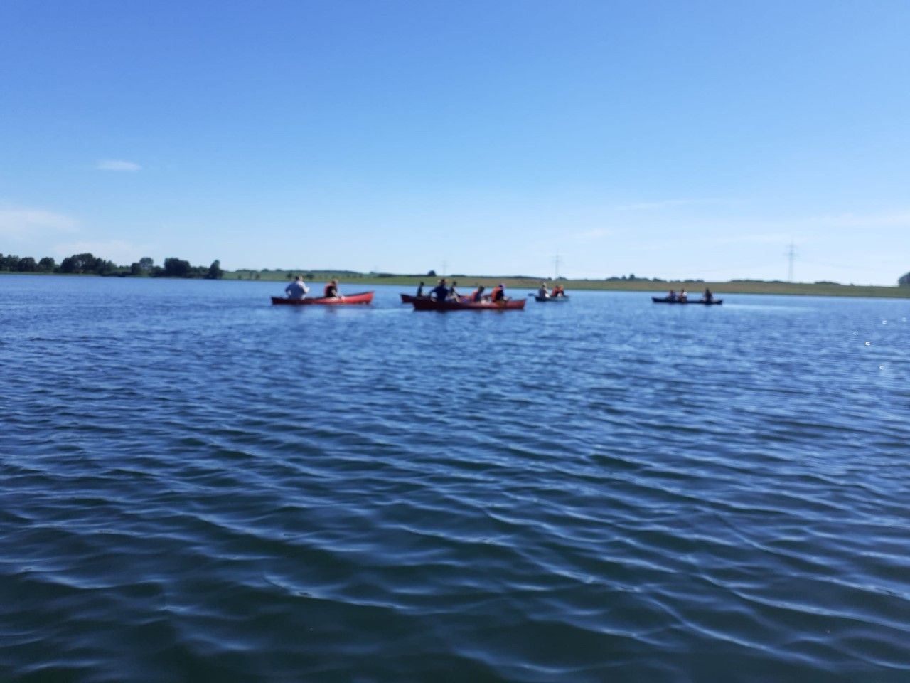 Am Mittwochnachmittag waren wir noch in einem Wisent-Gehege. Wir waren bei der Fütterung dabei und konnten ein kleines Wisent mit seiner Mutter beobachten. Das war süß. Lisa und ich haben den Pfleger gefragt, ob man auch auf diesen Tieren reiten kann. Er hat uns einen Vogel gezeigt. Am Donnerstag wollten wir den ganzen Tag Kanu fahren. Das Wetter war gut und wir sind mit 5 Booten gestartet. Ich saß mit Nico in einem Boot und wir hatten keine Probleme. Bei einem der Boote sah das anderes aus. Aber wir haben uns tapfer durchgekämpft. Nach einem Mittagspicknick sind wir umgedreht und zurück gepaddelt. Dann haben manche ihr Boot mit Absicht zum Kentern gebracht. Das war lustig.