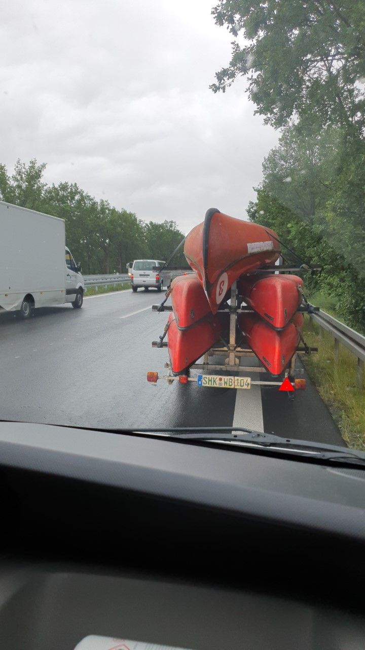 Wir sind am Montag, den 20.06.22 um 7.45 Uhr hier los gefahren. Johannes und Herr Ott mussten noch an der Tankstelle in Quirla die Kanus anhängen. Herr Ott ist früh noch etwas Lustiges passiert. Er hatte seine ganzen Papiere im Auto vergessen, so, dass wir einen kurzen Umweg über Bad Köstritz machen mussten.