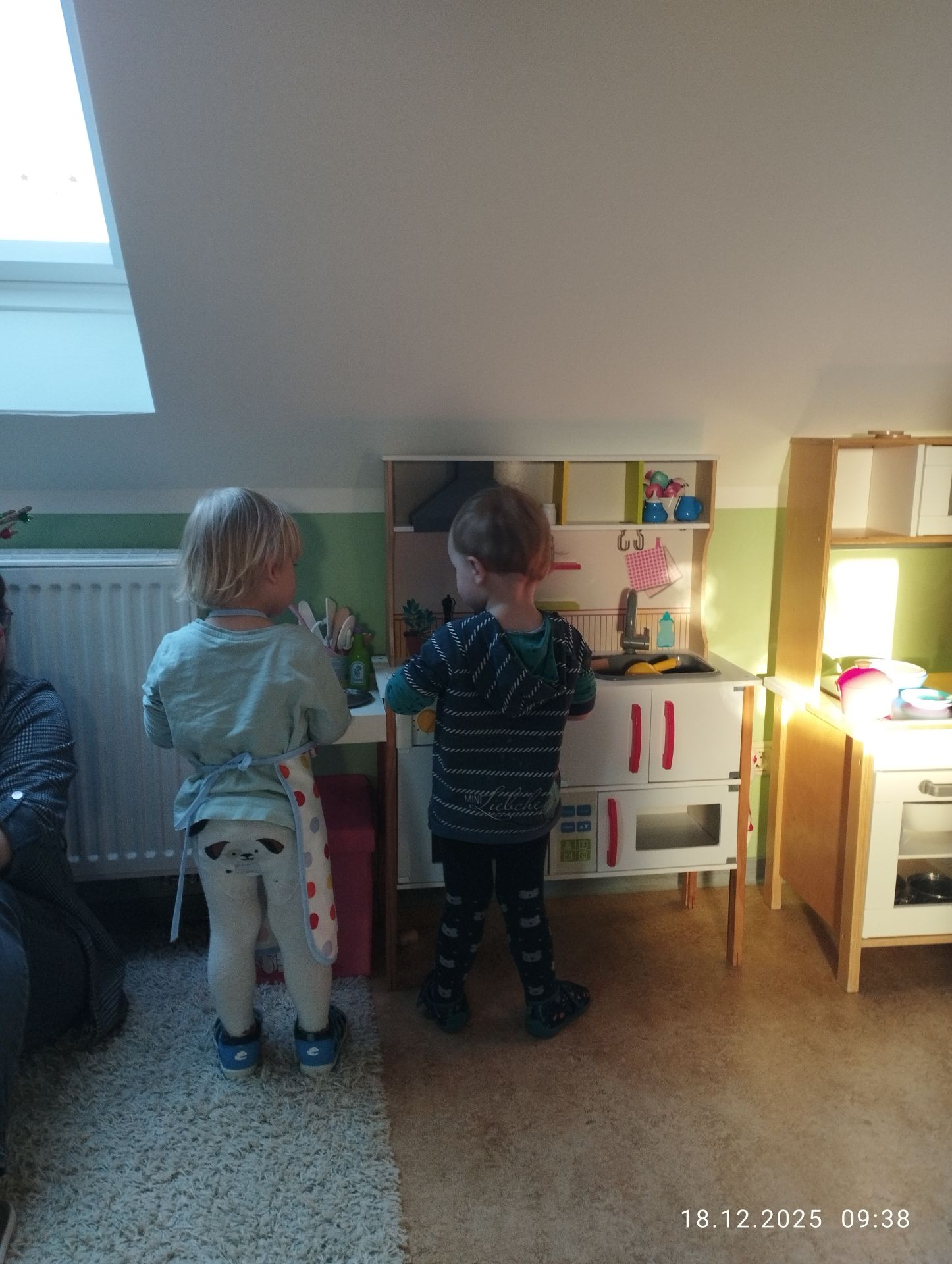In der oft hektischen und mit Aufgaben überfüllten Vorweihnachtszeit war unsere Weihnachtsfeier ein Moment des Innehaltens, der Gemeinschaft und der Wärme. Gemeinsam mit den Müttern und ihren Kindern haben wir das Jahr in einer liebevollen und geschützten Atmosphäre ausklingen lassen. Die Kinder konnten in der Kinderbetreuung schon am Vormittag Geschenke vom Weihnachtsmann für die Gruppe auspacken. Es gab eine neue Spielküche mit ziemlich viel Zubehör, die natürlich sofort genutzt wurde.